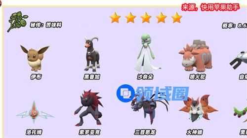太阳伊布,冰伊布,毒藻龙,耿鬼,仙子伊布,