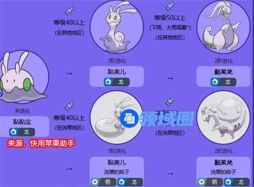备注:洗翠地区的黏美儿和黏美龙外形上会有差异的。洗翠地区雾天是不可以进化的。而黏黏宝前期玩家是可以捕捉到的,并且在大世界的沼泽,水池边经常刷。