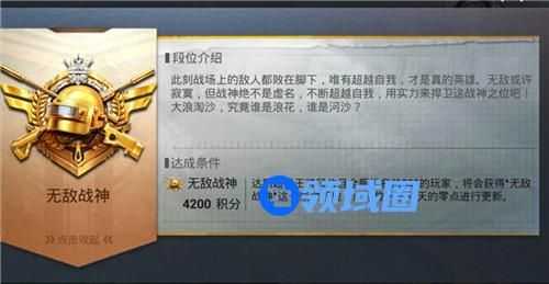 无敌战神:达到超级王牌段位,并且积分全服排名前500的玩家,才能达到无敌战神段位。