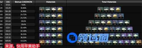 40级:烈日威权的余光*5、失活菌核*18、蕈兽孢子*12、摩拉*20000;