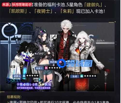 新手无限卡池五星角色组合推荐:首选夜骑士两个,之后是夜骑士+朱莉,夜骑士+任意角色,其中不建议选建御丸,因为前期用不到,阵容组成比较的麻烦。