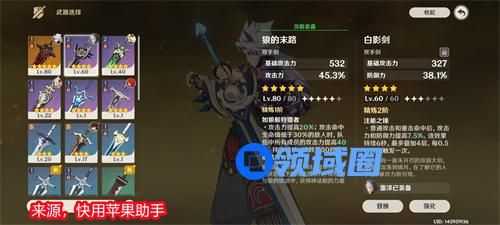 3、从上面的白影剑属性可以看出是非常的适合荒泷一斗的,因为荒泷一斗是一位吃防御力加成的角色,防御力加成越高输出越高,只不过因为武器的属性是加防御,所以圣遗物的压力就高了需要堆高暴击和爆伤。