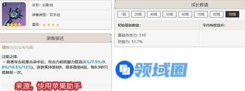 2、白影剑属性分析:90级有着510的基础攻击力和51%的防御力加成,并且武器特效是普攻和重击命中后会提升攻击力和防御力最高48%非常强力,虽然是持续6秒。