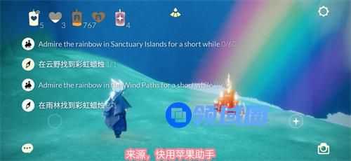 2、具体节日内容:缤纷飞行日活动期间,玩家会在遇境当中看见彩虹,这时候如果玩家飞行到彩虹附近,就会获得烛火,和随机颜色的尾异,并且彩虹会随机出现在地图当中,还有节日期间的每日任务也是会出现需要玩家寻找彩虹欣赏一分钟的任务。