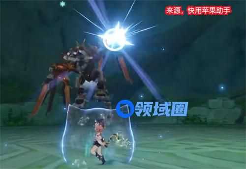 2、使用刻晴的e的蓄力选择它的头部光点,利用二段e的大范围攻击破坏核心