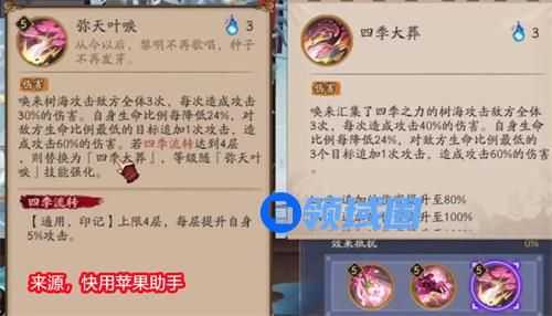 如果四季流转达到4层技能将会替换为「四季大葬」,效果为对敌方生命比例最低的3个目标追加攻击。