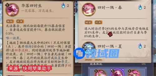 四时一隅·春:进入时治疗季与其他友方生命,友方施放技能时治疗自身与季生命;