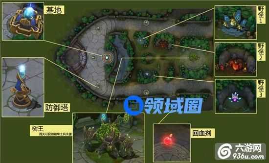 在地图中央有怪物,杀死怪物可以获得补偿。在最中央的地方有一个终极怪,杀死它之后上下路的小兵都会变成超级小兵。