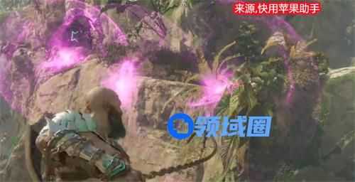 首先我们到如图的位置,然后有三个火盆需要点亮。我们可以利用紫色符文箭头来创造点燃环境,然后使用混沌之刃点燃产生连锁反应解谜。