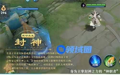 官方技能描述:姜子牙击败目标后会额外获取到1-3点的经验光球,达到5级后会突破等级上限继续提升到25级,并且获取到赐封之力给一名队友对其封神,使其也突破等级上限,并且有概率获取经验光球。