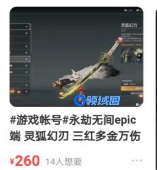 永劫无间当中太刀现在就只有一件红皮-灵狐幻刃,最近也是有玩家问我只把太刀皮肤能值多少钱?对此小编今天就给大家带来详细市场售价,感兴趣的玩家不妨来参考一下。