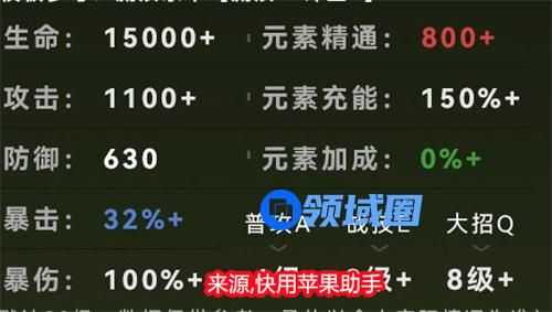 魔导绪论:800+元素精通,1500+攻击力,元素充能150%。