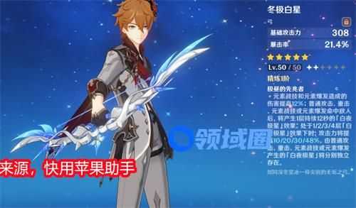 1、冬极白星是公子的专武,也是所有武器当中属性综合最好的一把武器。