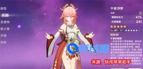 千夜浮梦这把武器有着542的基础攻击力和268的元素精通。而且武器特效是根据角色的队伍元素类型而定的,想同加精通,不同加元素伤害,所以如果使用就会限制配队,但在伤害提升方面虽然没有神乐高,但也确实是神乐的下位选择了,至少比天空之卷要好很多。
