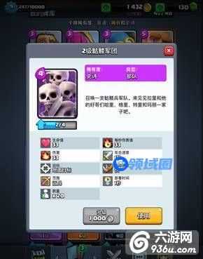 骷髅军团在我看来更像一个法术,是一张能够瞬间铺一地骷髅同时占用大范围面积的卡牌,每一个单位都很脆弱,但是20个单位的围杀和集体突击还是非常厉害的。骷髅军团是一张针对牌,对王子、皮卡、地狱塔这类慢攻速高攻单位非常有效,但是面对高攻速或多点进攻或范围伤害的敌人如法师、炸弹人、公主等,就比较乏力,当然箭雨和电击也是骷髅军团的克星,同时哥布林也可以快速消灭大部分骷髅。
