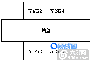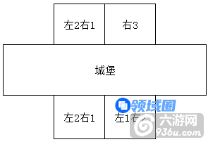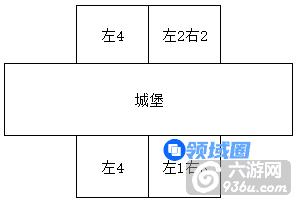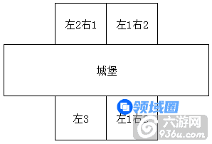 如图所示,分兵的位置分成四个:左后(红色)、左前(黄色)、右后(蓝色)、右前(橙色)