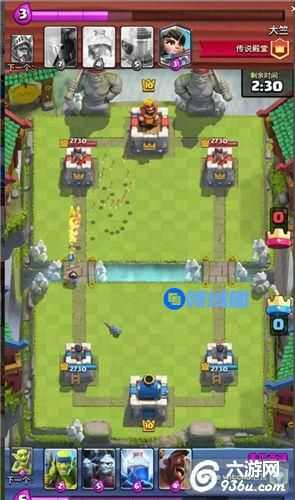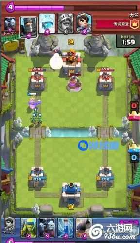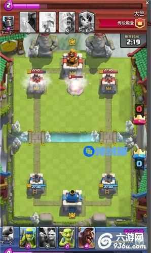 大家可以看到前几个回合下来他的塔消耗了大半,而我塔防毫发无损,这个时候我在下公主意在看他有没有第二个万箭可以解我公主了,如果解了剩下我只要丢个土炮再加苍蝇堆就可以随便解掉他的大皮卡并且苍蝇堆还有一次反攻机会了。