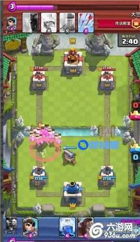 对面暂时没管公主开始在另一边下兵攻击,这种情况更好了,你可以磨他很多血,而且你仅仅消耗了3点圣水,不论他是什么流派进攻你我想你都有充裕的时间部署剩下的防御来抵挡。