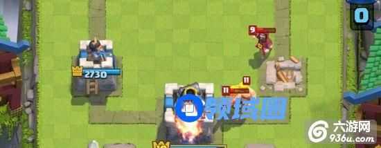 2、那么并非所有人都知道的是,在一局游戏开始时,国王塔是不会发动攻击的,换句话说,处于“睡眠状态”。只有当一座侧塔被破掉,或者国王塔受到伤害(即便两座侧塔都还在)后,才会开始拿起大炮进攻。
