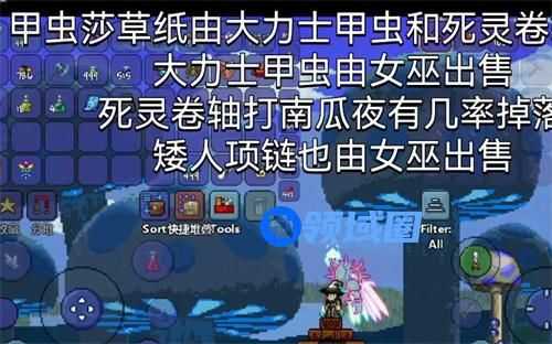 星辰套是玩家击败天界塔掉落的星辰碎片合成的一共需要45个星辰碎片。甲虫卷轴是玩家使用圣甲虫和死灵卷轴,合成甲虫卷轴。死灵卷轴是击败衰木和南瓜王有几率掉落死灵卷轴。矮人项链是玩家在巫医npc哪里装备矮人法杖后使用20金币购买的,最后附魔桌子是女巫哪里获取的。