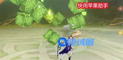 2、这是玩家需要使用草元素攻击激活这些晶体,然后就会发现屏幕上方血条下面有一个绿色的充能条。