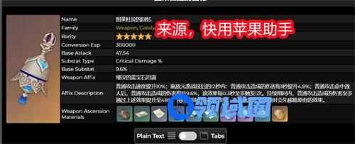 武器分析:这把武器非常的强势是普攻特化武器,强度非常的很高,并且词条674基础攻击力,44%的暴击率,的安排简直离谱,而且武器特效在很多的法器角色来说都是非常的泛用,可莉,凝光,等角色都完美使用。