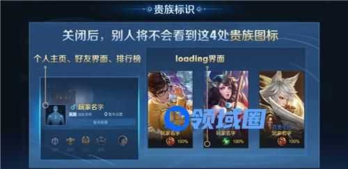 关闭贵族标识后,好友无法从个人主页、好友界面、排行榜和加载界面,看到你的贵族等级,只关掉这一个就够了。除非你是V8,想要关闭金色名字,也可以在这里取消勾选。