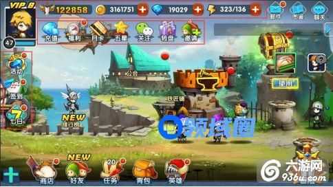 英雄,点击可以查看自己拥有的所有英雄,对英雄的战斗力进行提升,对主角进行转职,进行阵容设置,重生返还材料等操作。