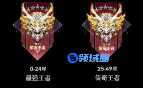 王者:最强王者(0-24星)、无双王者(25-49星)、荣耀王者(50-99星)、传奇王者(100星+)