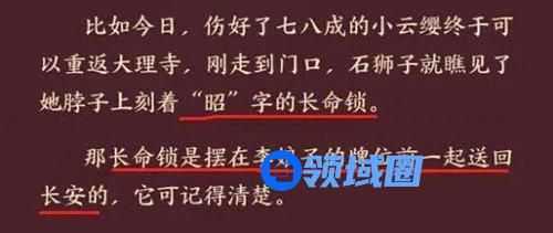 背景故事中提到刻着“昭”字的长命锁,以及这个故事的叙述者石狮子提到了这个长命锁是属于李娘子的。