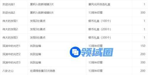 除了任务外,还可花费13周年印章在NPC莎窦麦处购买各种奖励