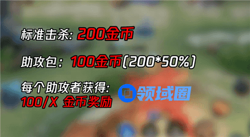 最开始没有改版的时候,助攻是基于击杀金币的50%,然后在将着50%金币平分到助攻人数上面;其实很简单,意思就是加入一个人头击杀者拿200金币,那么除去击杀者有4个人参与助攻了,就是(200*50%)/4=25金币,也就是说每个助攻的人拿25金币。
