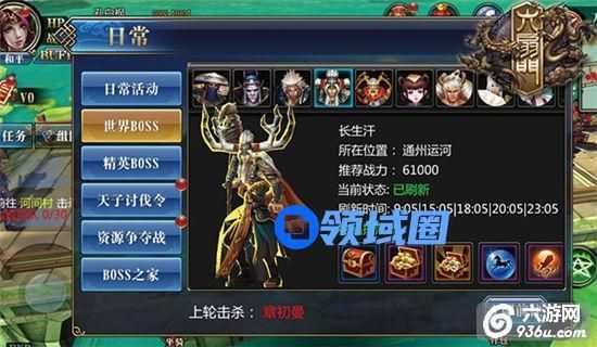 刚才提到的那些,大侠也无需丧失信心,一步一个脚印总能慢慢战胜!在《六扇门》手游中,每个地图中的世界BOSS刷新时间都不一样,具体的刷新时间点,可以参考游戏内介绍,大侠可提前从【日常—世界BOSS】进入地图等待,刷新世界BOSS后就能与之开启一场殊死较量啦!