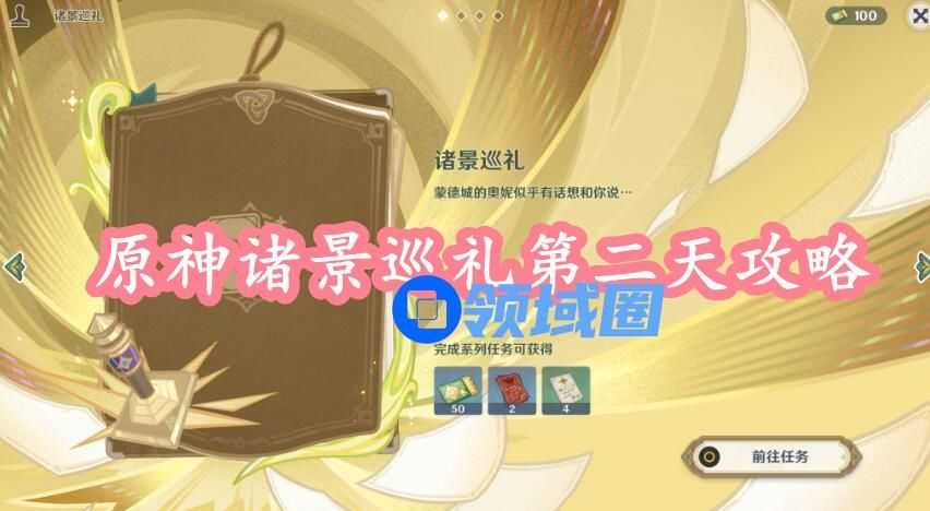 以上就是这篇文章有关原神诸景巡礼第二天攻略的所有内容了,这样就能够完成任务了。更多游戏相关资讯内容,敬请关注kuaiyong。