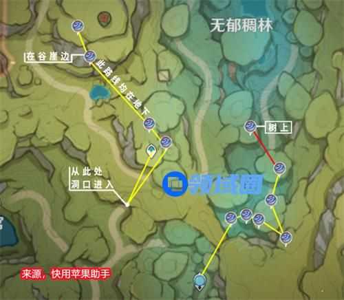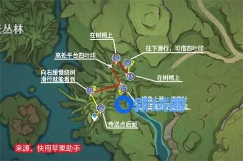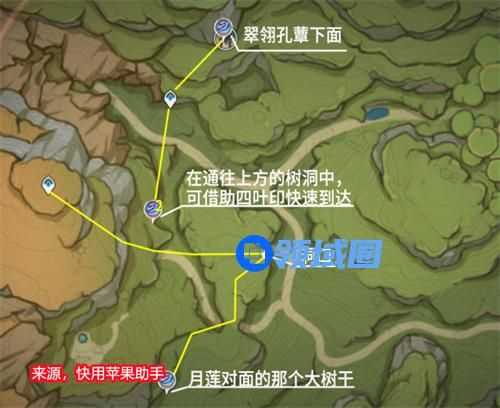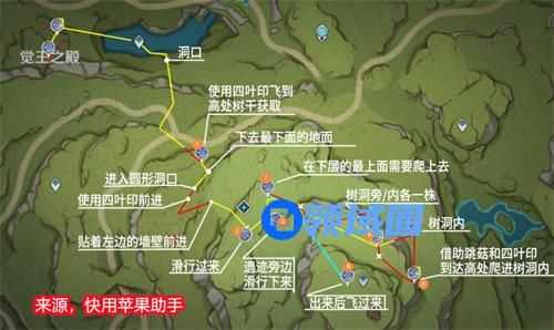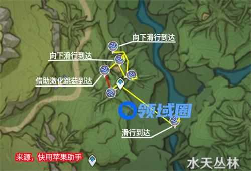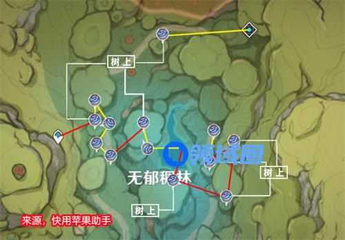 以上就是原神中大世界树王圣体菇的快速路线了,这里玩家推荐去无郁稠林收集,因为哪里的材料获取比较的简单,地下和树上都分布,并且好发现,如果玩家有小草神那么获取材料的速度会更快。