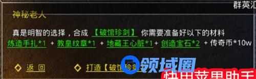 破馆珍剑是只有锻造合成。其中是需要接取神密老人任务后解锁锻造图纸,炼造手礼x1,教皇纹章x1,地藏王心脏x1,创造宝石x2+10w传奇币。