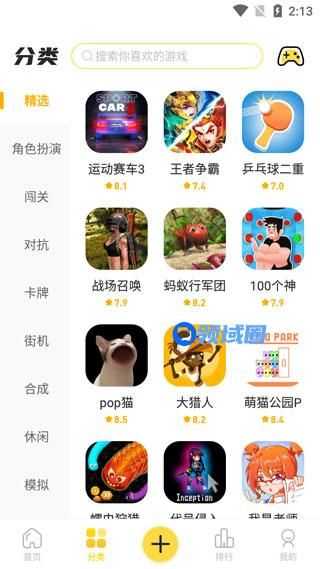 2、点击分类可以看到很多不同玩法的游戏,你也可以搜索想玩的游戏。
