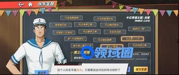 《海贼王热血系列》游戏中再次更新了出海伙伴的猜谜题。而其中“斩龙之人”的答案是:他挥舞着一柄孤寂的单刃剑,XF型血液流淌在他的体内,诞生于壮美的十一月。现在,让小编向大家盈述航海王热血航线中那位曾勇斩垂云之巨龙的英雄的正解吧!对于那些需要的朋友们,请务必不要错过这个机会。