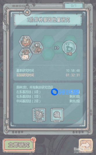5、接下来就是我们要大量研究的材料了,做完以后,大家点击左下角的【立即研究】的选项。