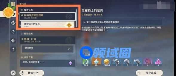 1、首先我们在游戏中打开任务栏,查看魔神任务,找到回响渊底的安魂曲即可追踪黑蛇骑士的荣光任务了。
