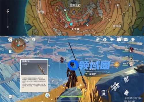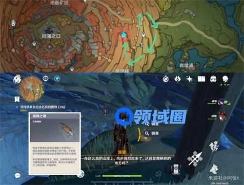 3、第二件物品【高翔之翎】,从如图传送点往外绕一圈再往上爬,具体路线图上标出来了