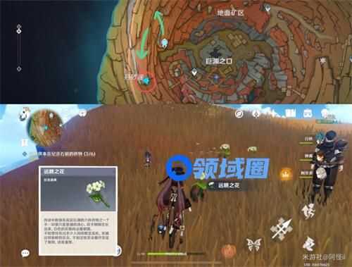 5、第四件物品【远眺之花】,从七天神像处从上跑,找到远眺之花,摘取后NPC会对你发起挑战