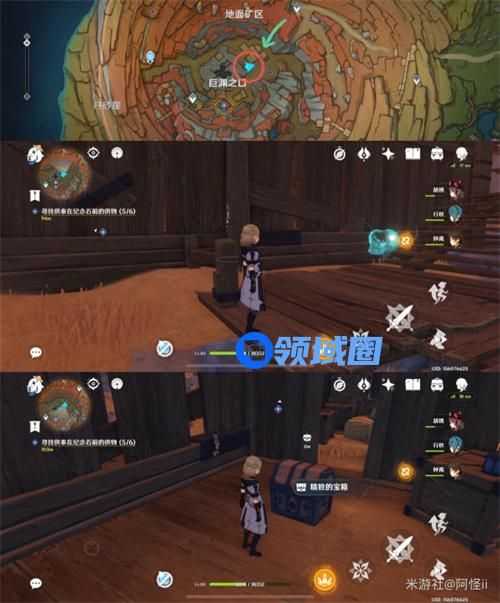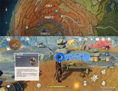 11、供奉完后旁边的石头会崩塌,就可以下去拿宝藏啦,华丽的包厢*1和4星千岩一套,再向“阿望”提交任务即可获得成就「唯千岩不动」