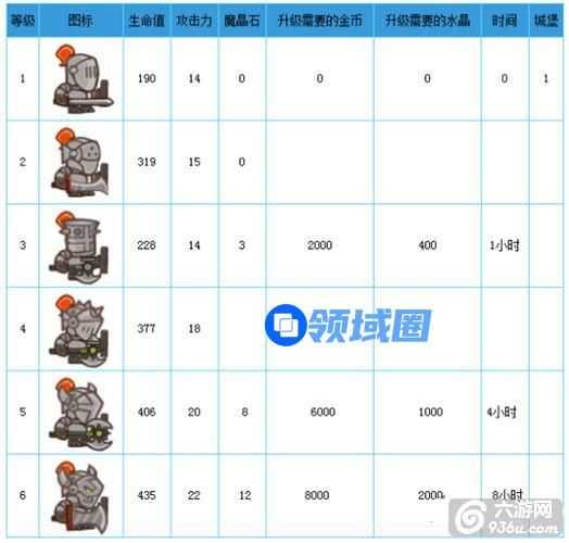 由于短脚步兵攻击距离较短,只有1,所以一般放在部队的第一排,战斗中可适当地增加短脚步兵的人数,随着城堡的升级,我们也会见识到越来越多的兵种和建筑。