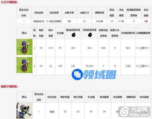 前阵子的无脑五狗球真心是给力,不过随着COC的改版狗狗已经很乏力了,弄不好就是一星甚至零星,我后来脑洞大开想到了女巫这个兵种。(女巫以及召唤出来小骷髅的属性在上图中大家可以参考)