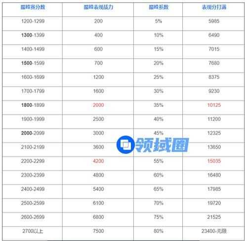 总之我们可以看出,巅峰分数和战力分当中的转折点就是巅峰1400-1500分,这个区间的表现分只有100间隔,但战力差距也是100,对比是非常的亏的,所以如果是真心拿战力,还是推荐达到1500以上。