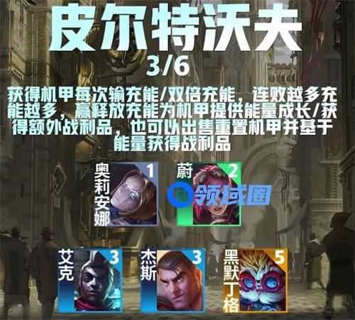 玩家们只需要前期阵容上奥莉安娜、崔丝塔娜、提莫、蔚、杰斯来组成3皮尔特沃夫+2枪手+1法师+1格斗家+2约德尔人+1战略家+1双重施法者,这样就会大概率提升皮城羁绊的出现概率了。