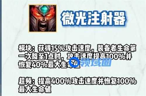模块:获得15%攻击速度,装备者生命第一次降至1点时,攻击速度提高100%并恢复40%最大生命值