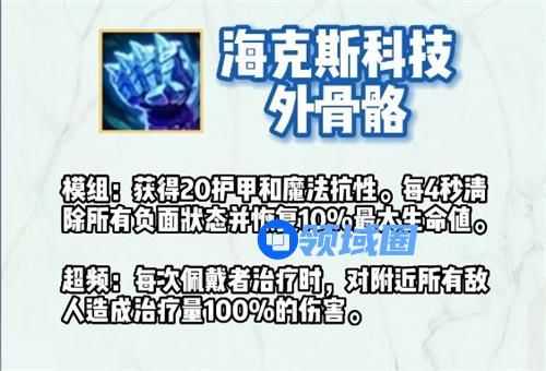模组:获得20护甲和魔法抗性。每4秒清除所有负面状态并恢复10%最大生命值。