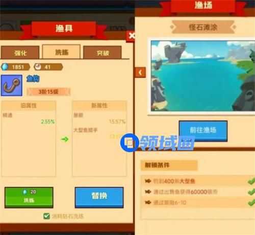 2、解锁渔场:开启上一个渔场后完成渔场相应解锁任务开启下一个渔场,仅能依次解锁。